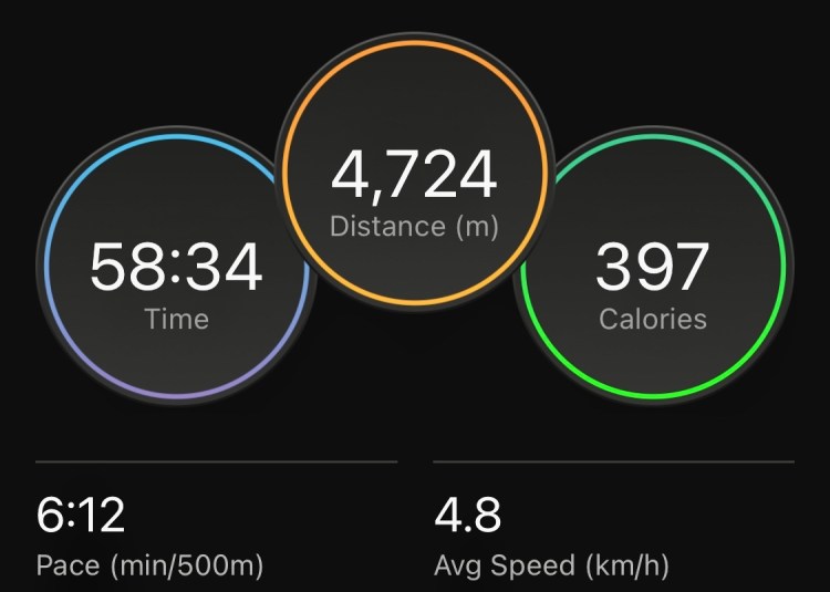 Quick 1000m warmup row before a Zwift virtual ride on WattBike.