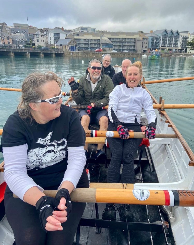 Nice social and training gig row to Perranuthnoe and back round the Mount with experience rowers Cox: Bernard, 6: Max, 5: Andy, 4: Zoe, 3: Dave, 2: Shirley, 1: Me.