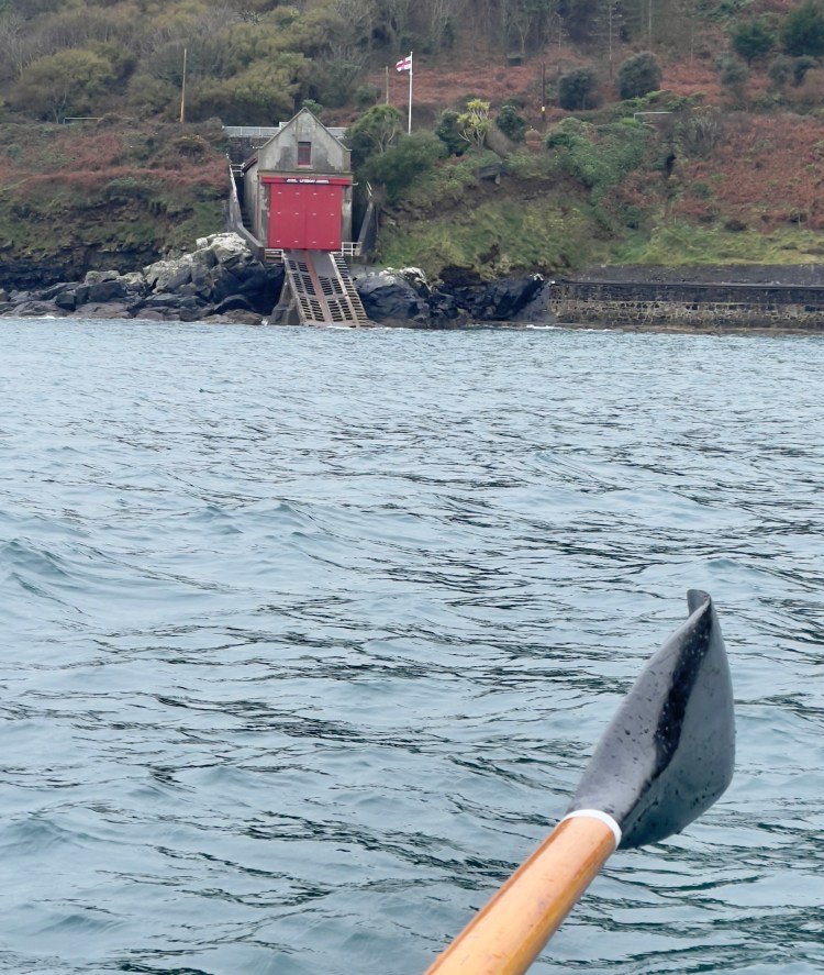Lovely gig row round Mount on calm seas for a change. Cold but light breeze. Cox: Maxine, 6 :Sandra, 5: Becky, 4: Andy. 3: Me, 2:Shirley, 1:Pat