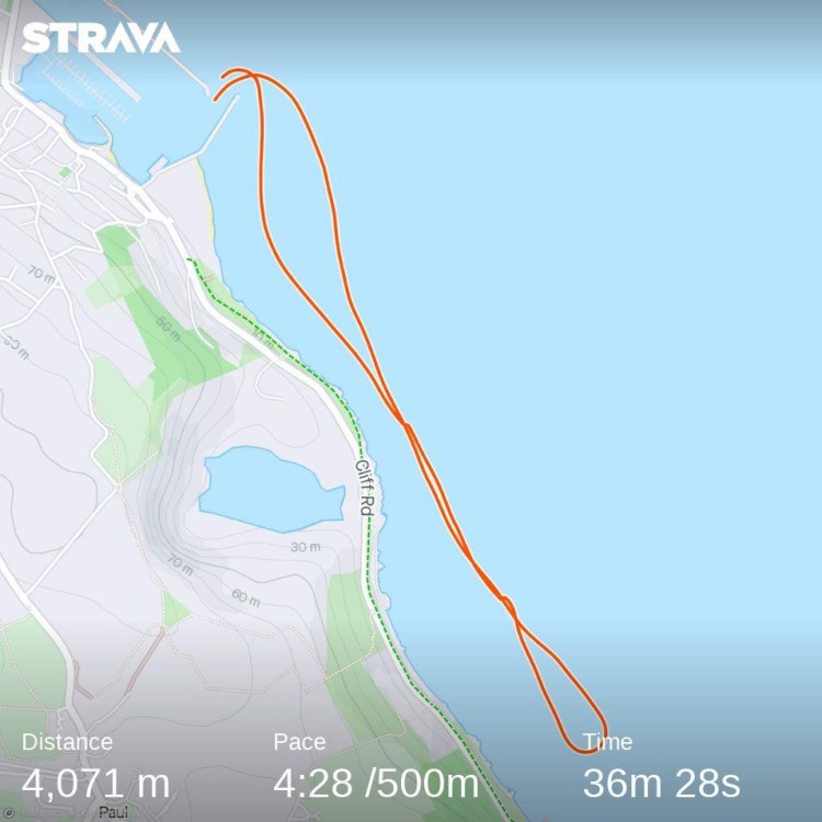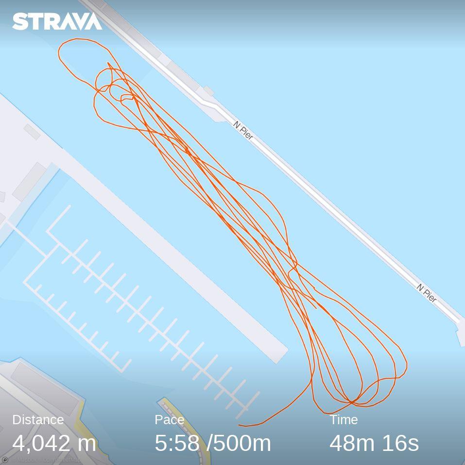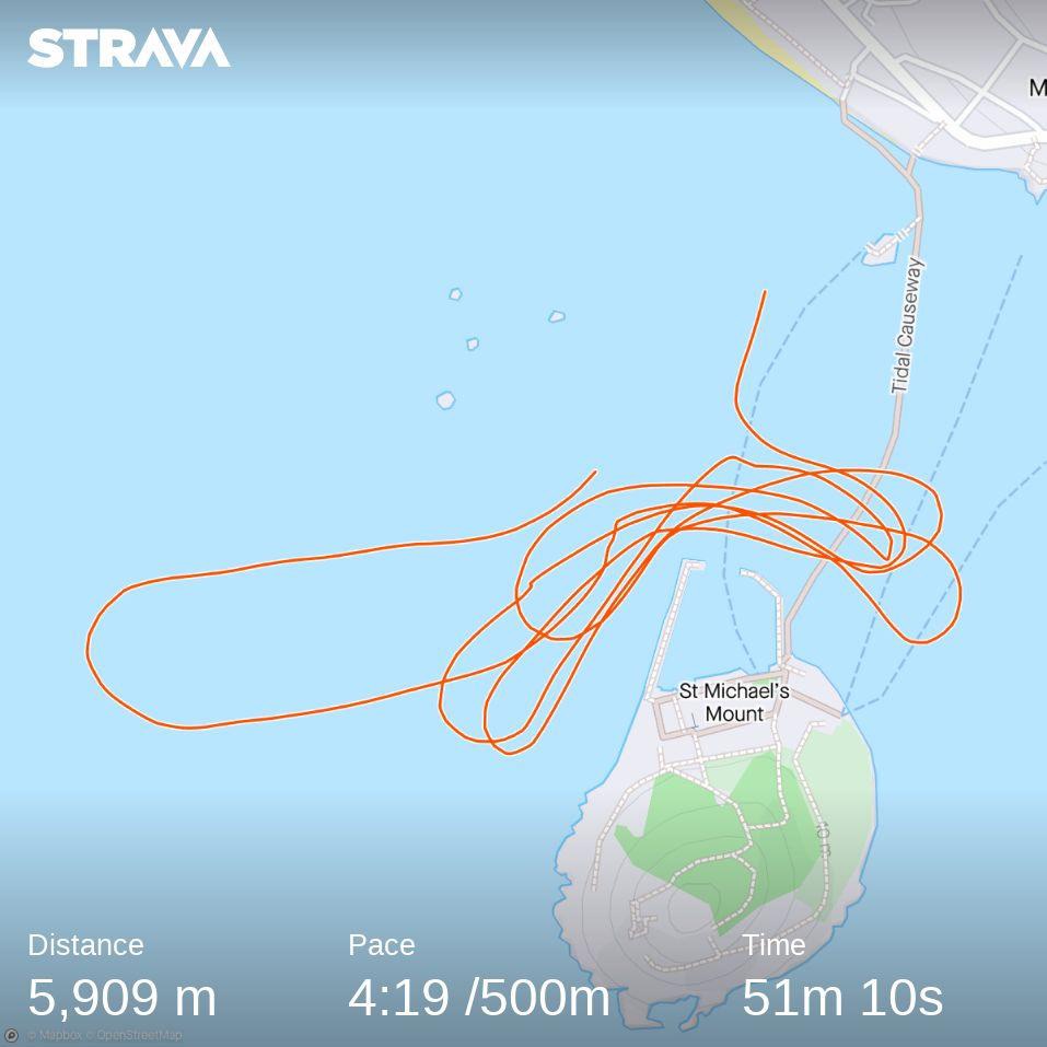 Birthday – 4km row technique training in and out of Newlyn harbour in swell. Shirley Cox – Bernard 6, me 5, Dan 4, Josh 3,David 2 and Andrew 1. Race starts general technique and rowing in the swell. Missed early row data.
