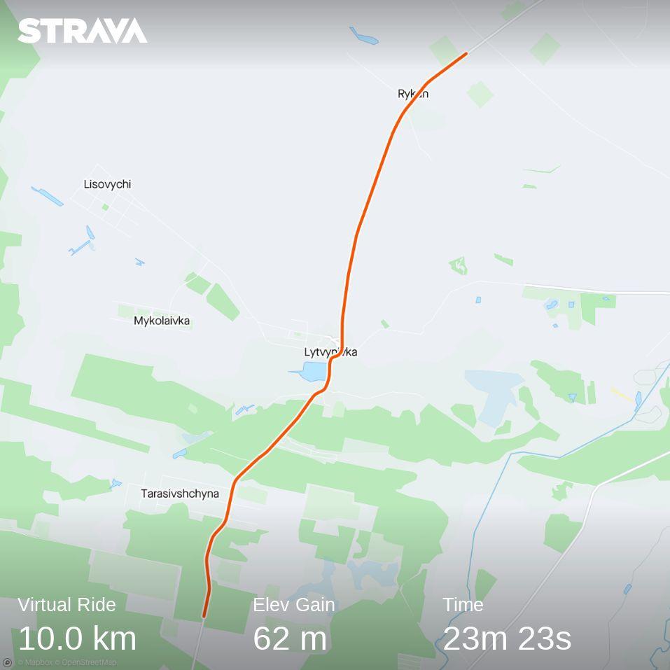 Back on the WattBike 10km virtual ride after a few weeks not riding. The Kyiv route makes you wonder wether it still exists?