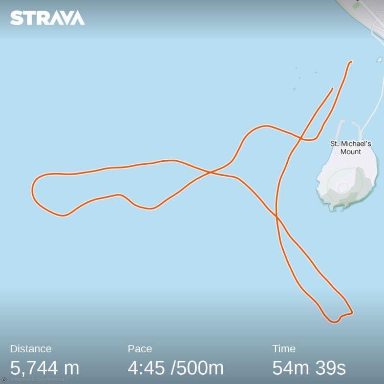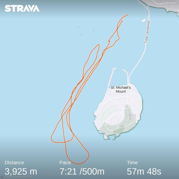 After a few days travelling and doing business in Essex – Two sessions with MBPGC at Marazion around the Mount. First session at seat 4 of nearly 4km with novices and second at seat 1 which was a harder session with experienced rowers which was almost 6 km.