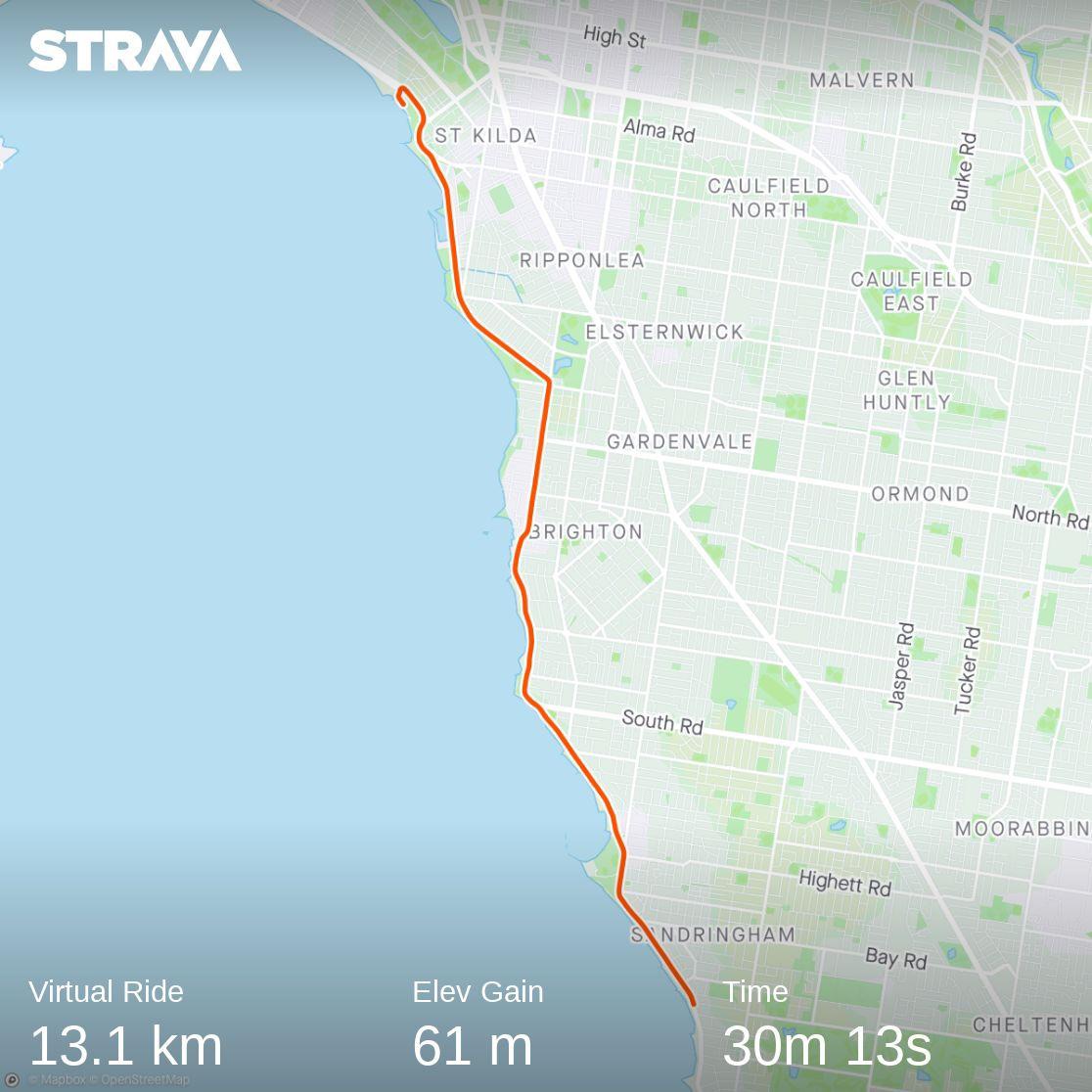 Good training virtual training ride on this ROUVY Melbourne, Victoria Australia route (Hamilton beach) course. Reasonable flat fastest route . Remembering visiting Melbourne after speaking at a conference at Canberra and going onto Thailand to present at the Thai FDA in Bangkok. Also visited Sidney prior to this.