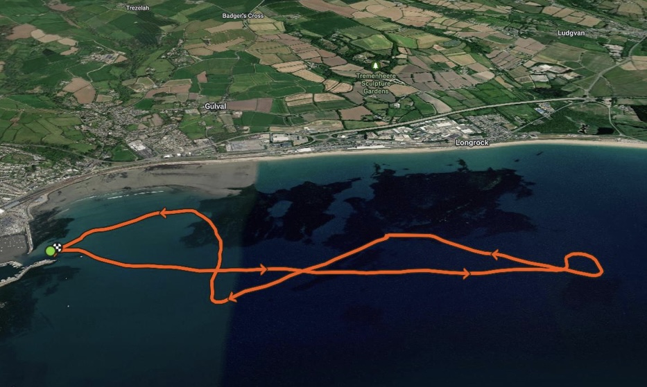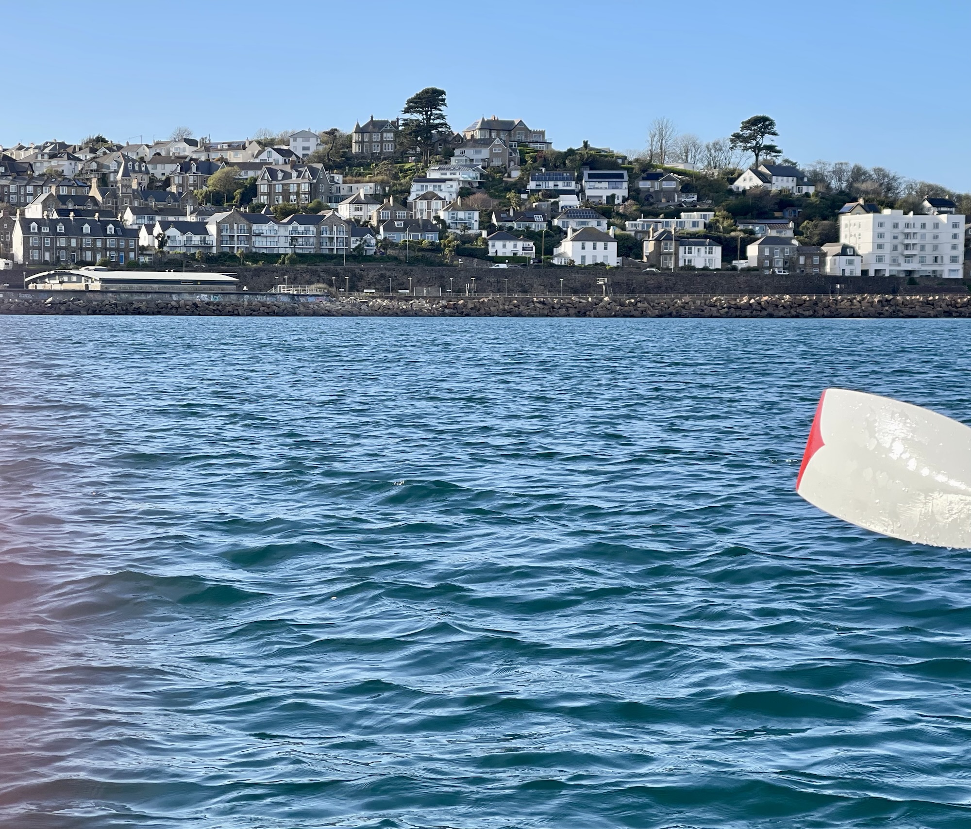 After a few days awful weather, nice 6.6km long row towards the Mount and back in sunny π weather. Sea reasonably good. Cox: Emma, 6: Jem, 5: Trev, 4: Me, 3: Wendy, 2: Chris, 1: Branchy. Afterwards went to Longboat for a drink and collected new kit from Wendy.