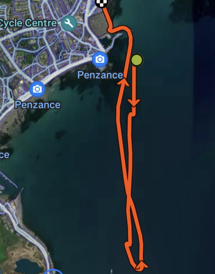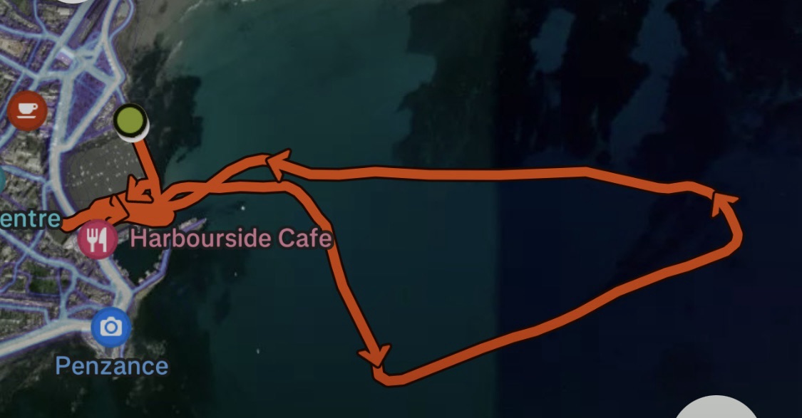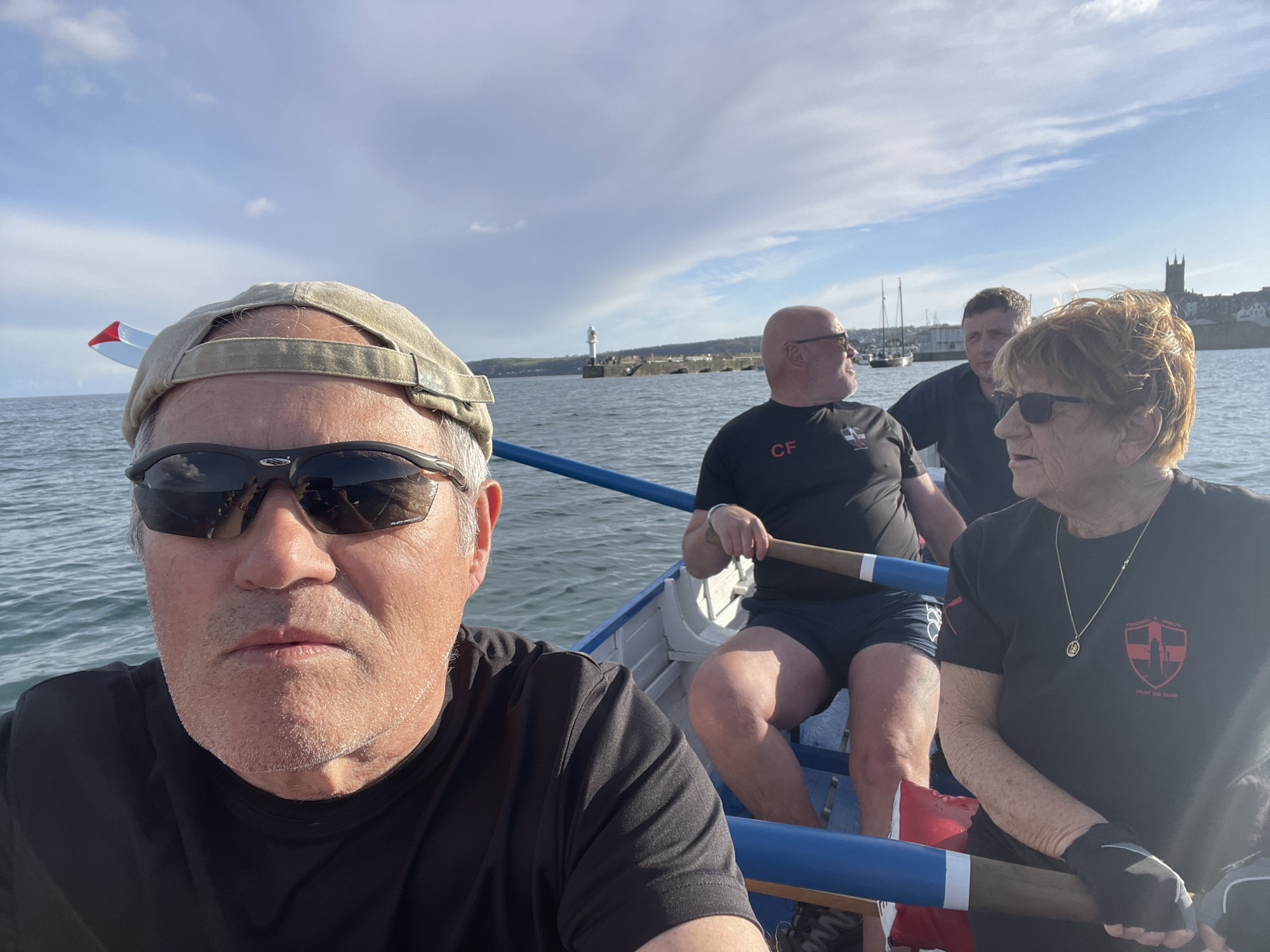 Wind dropped again and sea much better than yesterday. Rowed out forcefully to Border Force boat π₯οΈ. On way back did some starts and worked on technique. Good training session. Cox: Jim, 6: Steve, 5:Trev, 4: Ant, 3: James, 2: Me, 1: Duncan. Finally view of Scillonian that Pat us on the way back